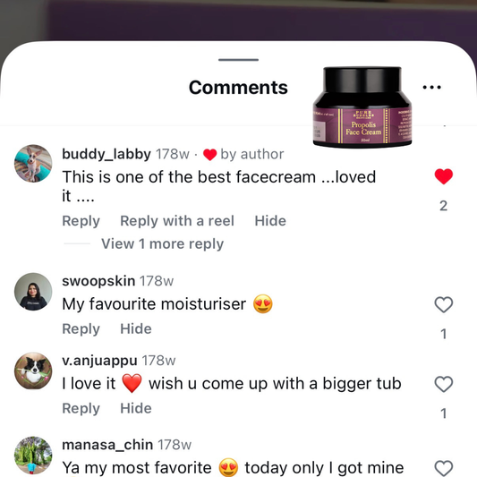 from 2075 reviewsClarity lotion and propolis creamIt's a boon for my sensitive combination skin. Works wonders and is very soothing.